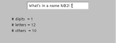 As an example we present a Java applet that prints the number of characters and digits of the text entered in the input field.