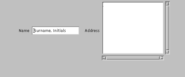 TextField name = new TextField("Surname, Initials", 25);