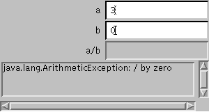 In the next applet, we adapt the above applet by catching the exceptions and sending them to an extra text area.
