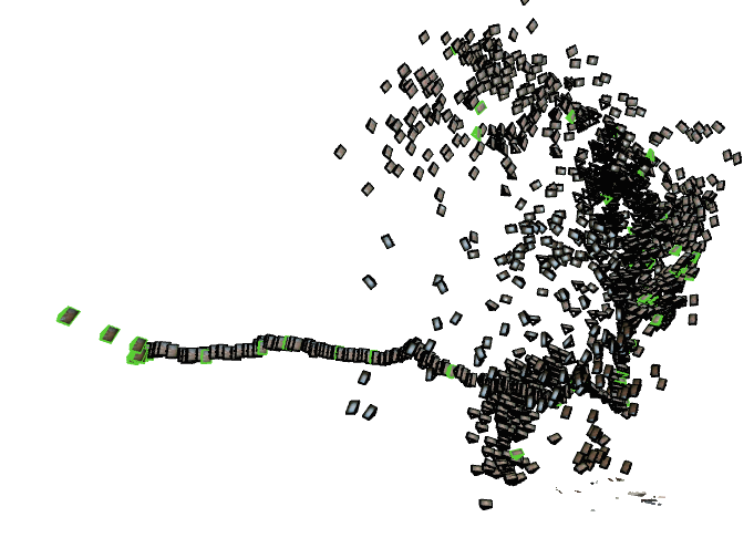 Moved 1138 frames to the skipped_frames directory. Did the run with context (set on default size=25) for 435 frames. The Visual Map looks good, but actually the robot turned already 180 deg into another corridor: