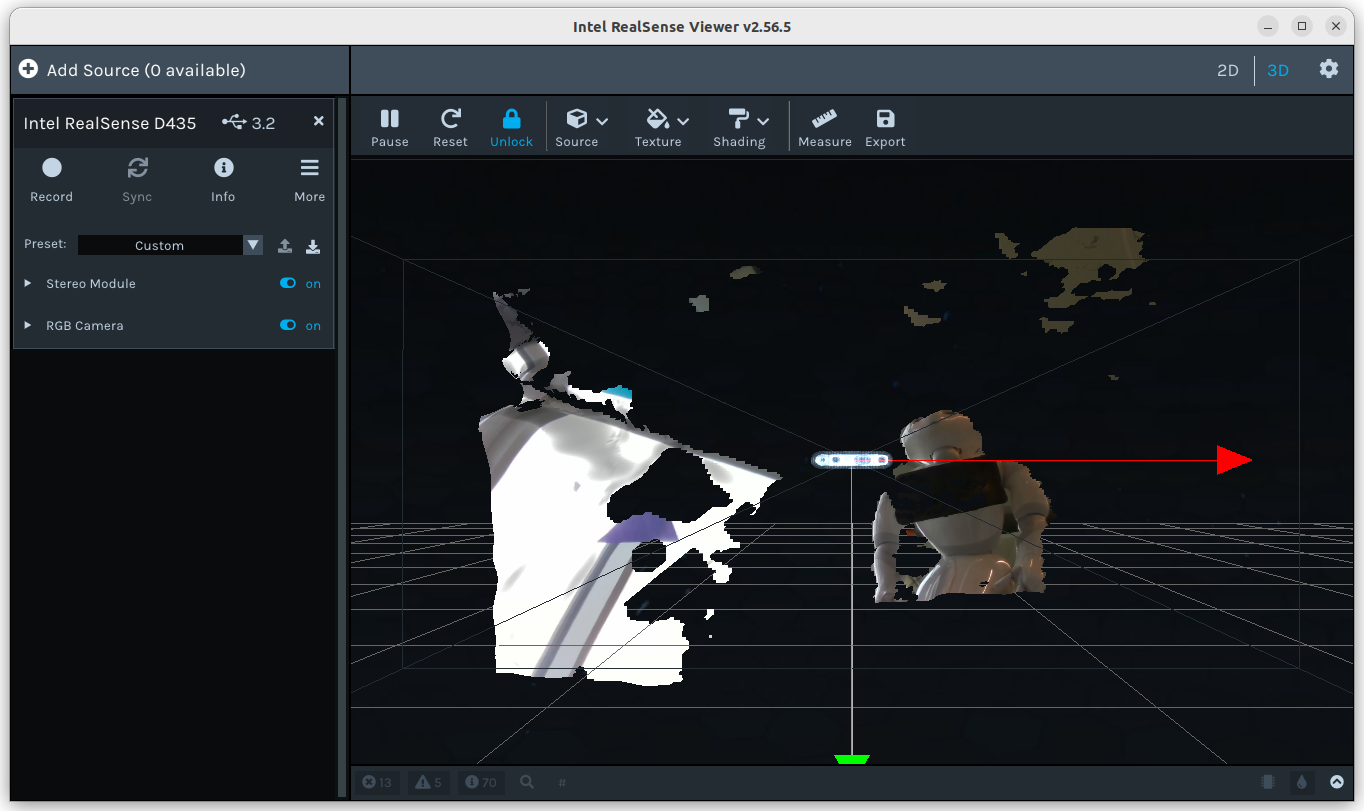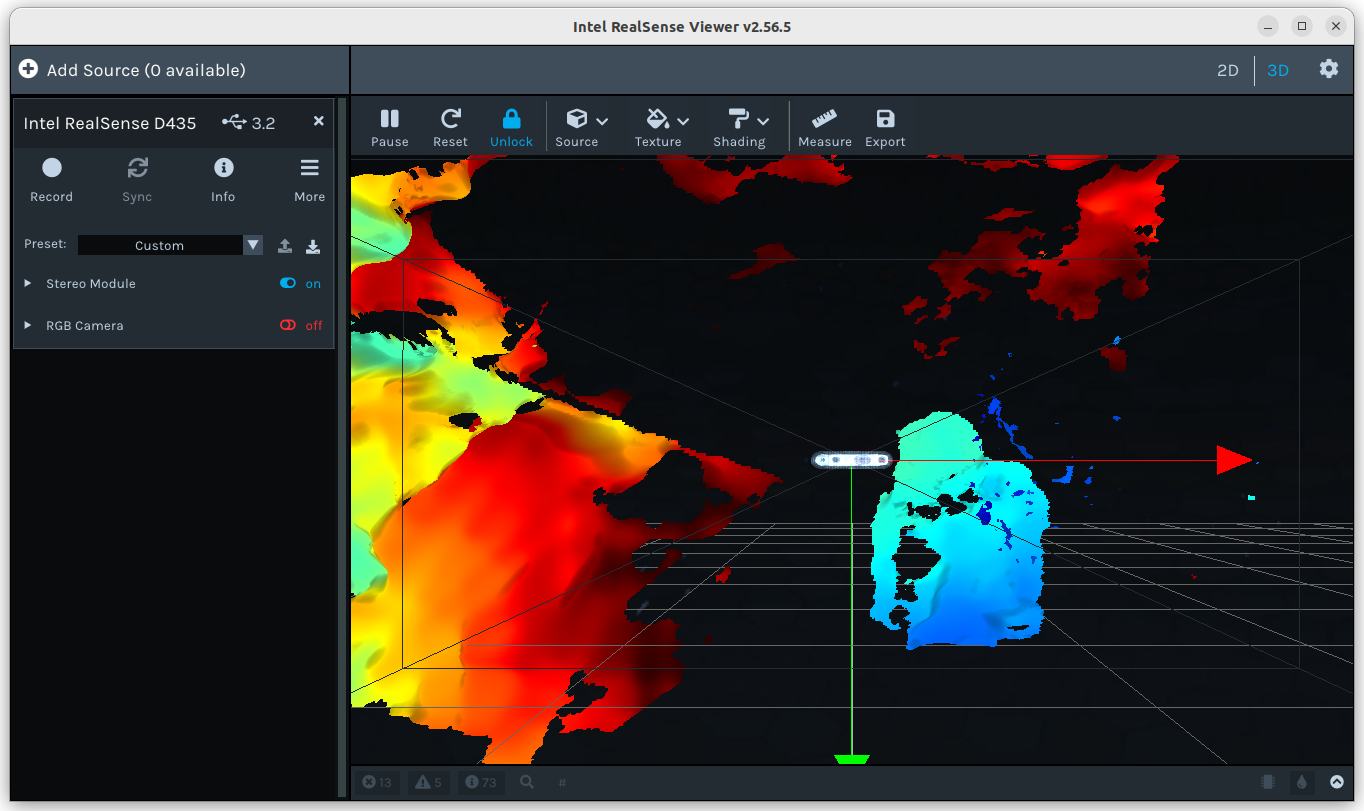 The realsense-viewer (v2.56.5) indicated that the D435 had firmware 5.16.0.1, while 5.17.0.10 was available. Did a Firmware update: