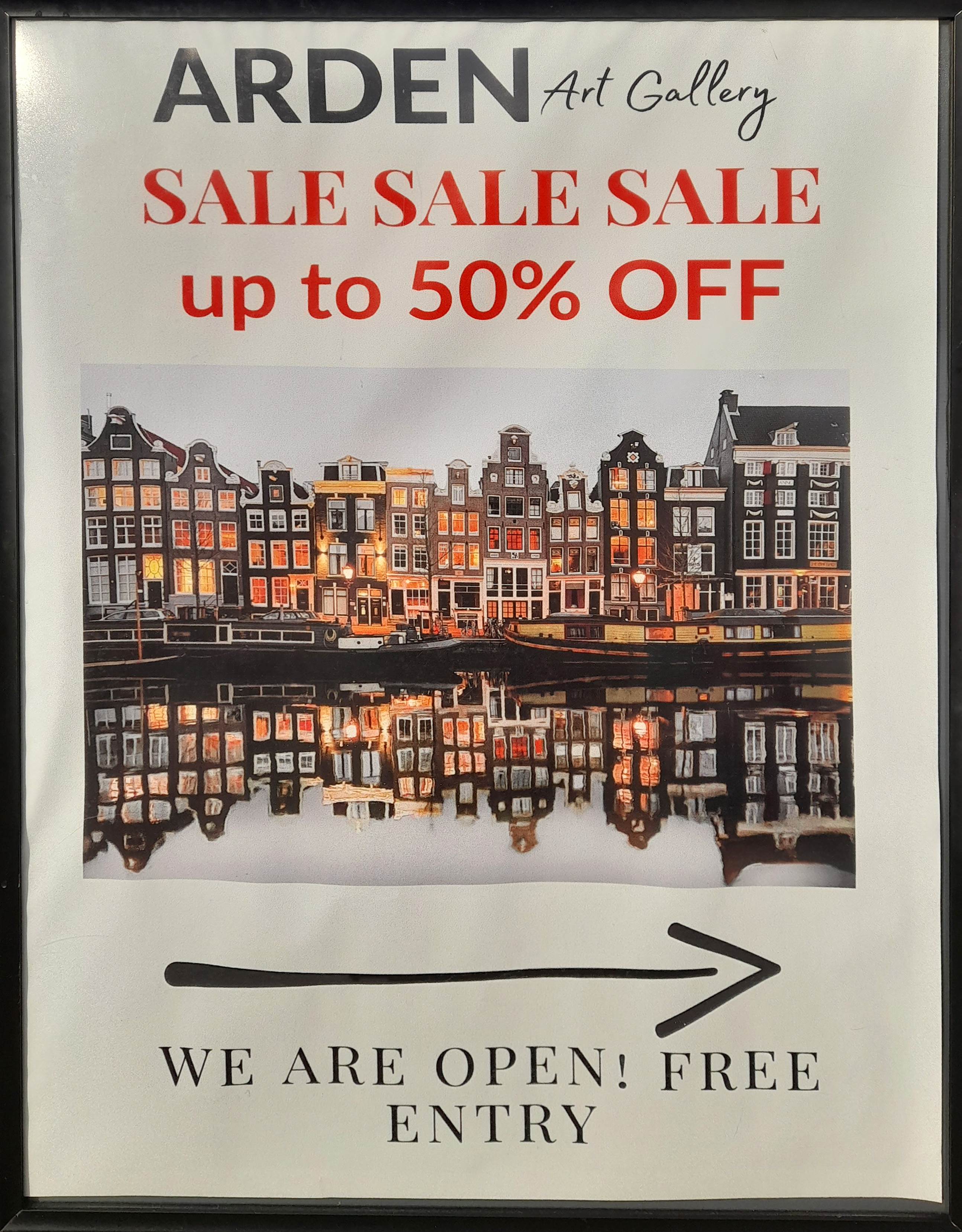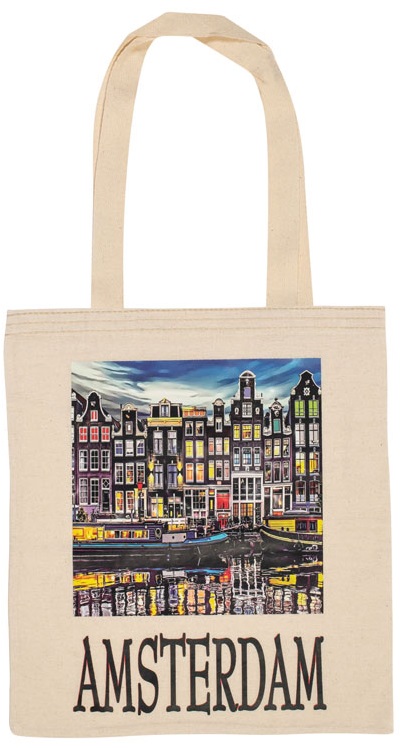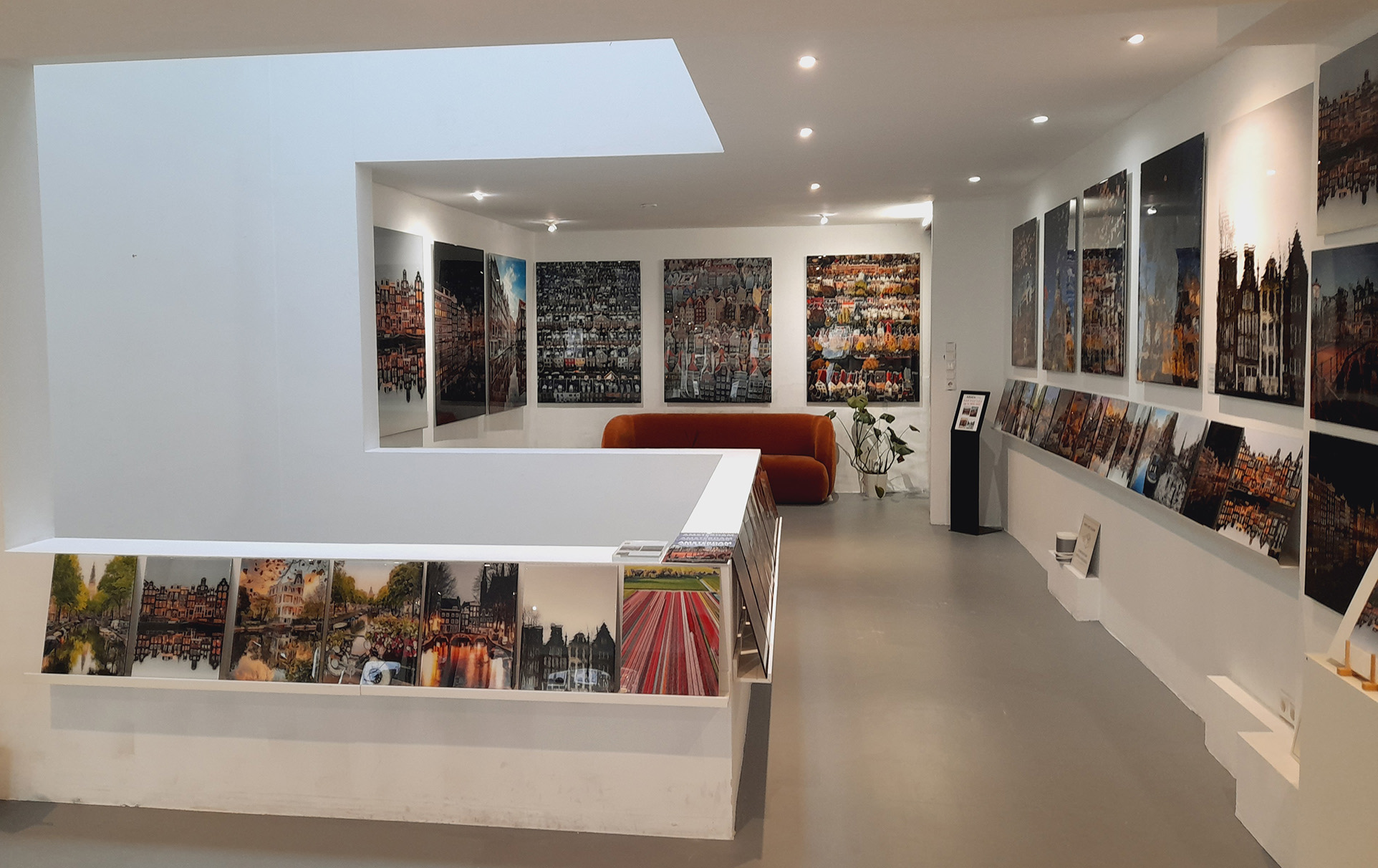 Arden Art Gallery sells printed pictures of our block on various media (2025). They call this scene "Magic Reflections", it was taken in 2020, during the Covid quarantaine time. There is also a more recent view, with the modern boat. Here a picture of their store, Prinsengracht 529. Another location is at Nieuwe Spiegelstraat 43H. |